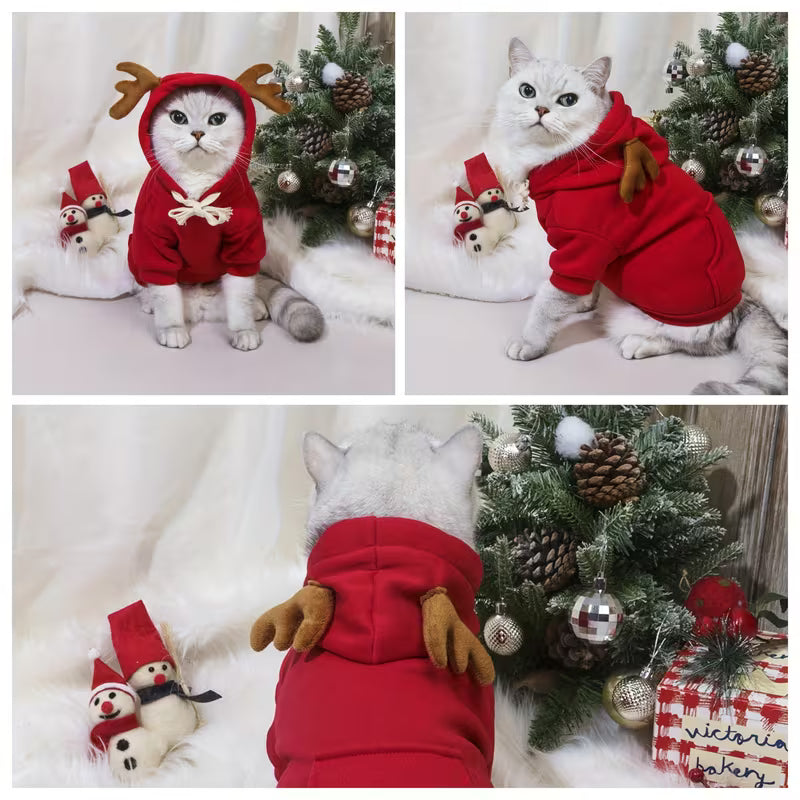 Koselig juleantrekk med mykt fleecefôr, perfekt for høst og vinter. Passer både hund og katt og har et trendy reinsdyrdesign som er ideelt til julebilder.