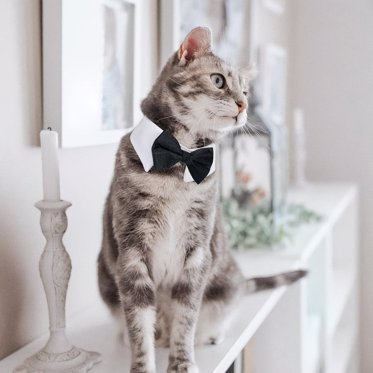 En stilren og formell sløyfekrage som gir kjæledyret et elegant uttrykk på en enkel måte. Den passer godt til bryllup, selskaper, fotografering eller andre anledninger der du ønsker et mer pyntet preg.